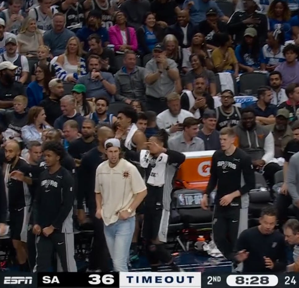 C’est donc l’œil curieux sur une individualité mais morne sur les collectifs que l’on a observé cette rencontre jouée – ce qui n’aidait pas – sur l’inexplicable parquet grisâtre de Dallas, véritable ode visuelle aux conséquences de la production d’hydrocarbures du Lone Star State. Pour tout dire et puisque ce site n’apportera rien de plus aux analyses déjà formulées par tout internet au sujet de Wemby, la véritable information de la soirée restera pour votre serviteur d’avoir aperçu Kelly Olynyk jaillir du banc des Spurs en tenue de ville, laquelle venait confirmer ce dont avait toujours eu le pressentiment : il est impossible qu’il ne soit pas au casting du clip de Sk8er Boi d’Avril Lavigne.
